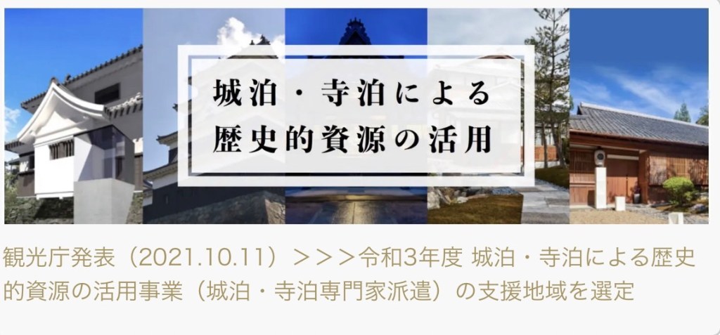 観光庁の令和3年度城泊・寺泊による歴史的資源の活用事業(専門家派遣事業)に採択されました
