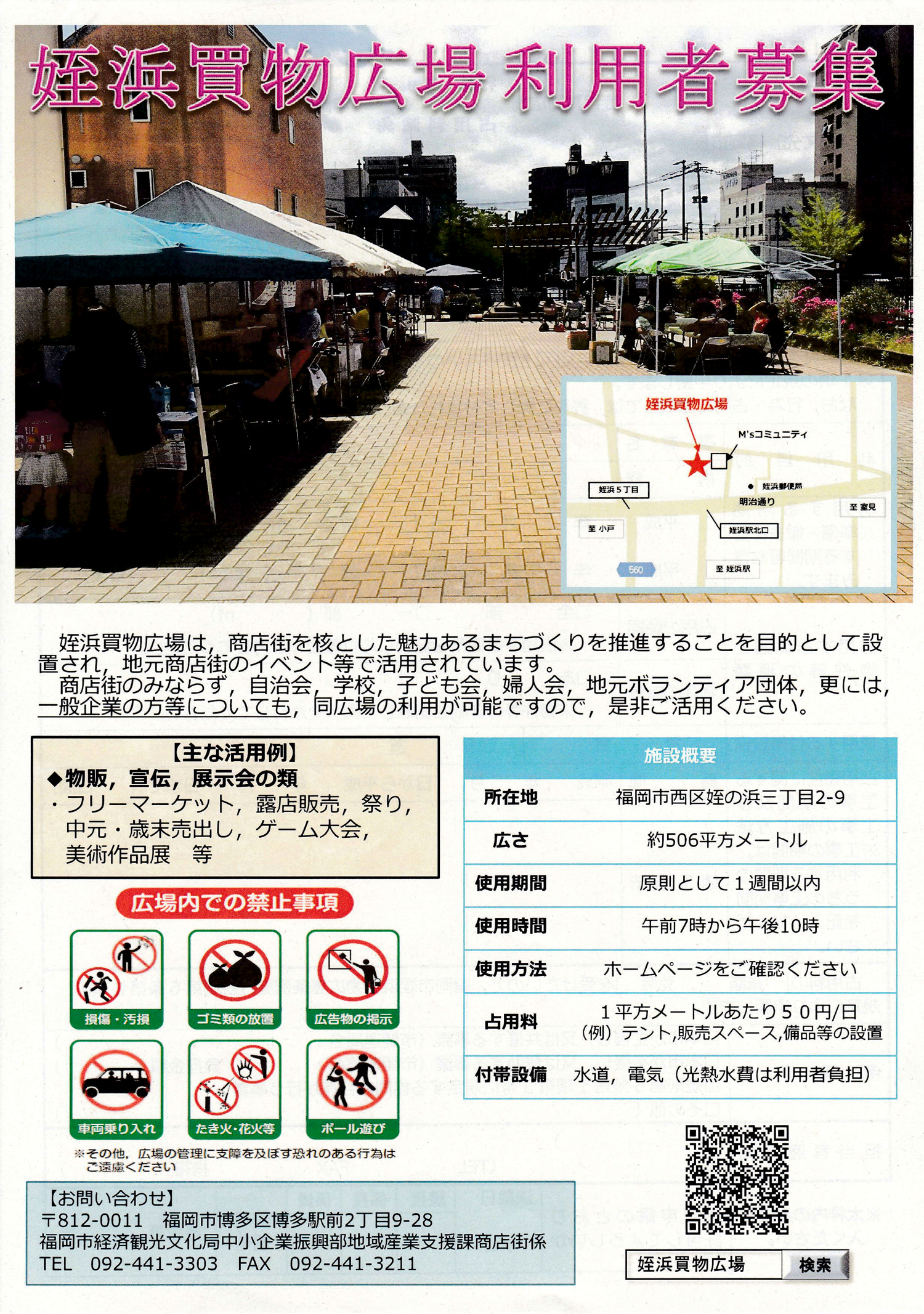 一般の方や企業でも利用できるそうで、利用料金も利用しやすい内容なのでイベントや催事などにおすすめです。弊社の事務所のある福岡市西区姪浜はとても魅力ある街なのでここでも随時商店会内のお店などの紹介も随時していきたいと思います^-^