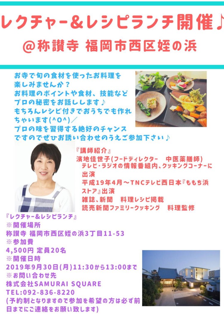講師に「ももち浜ストア」など福岡ではTVやメディアでお馴染みのフードディレクター 中医薬膳師の濱地佳世子先生をお招きして開催致します(^^)ノ