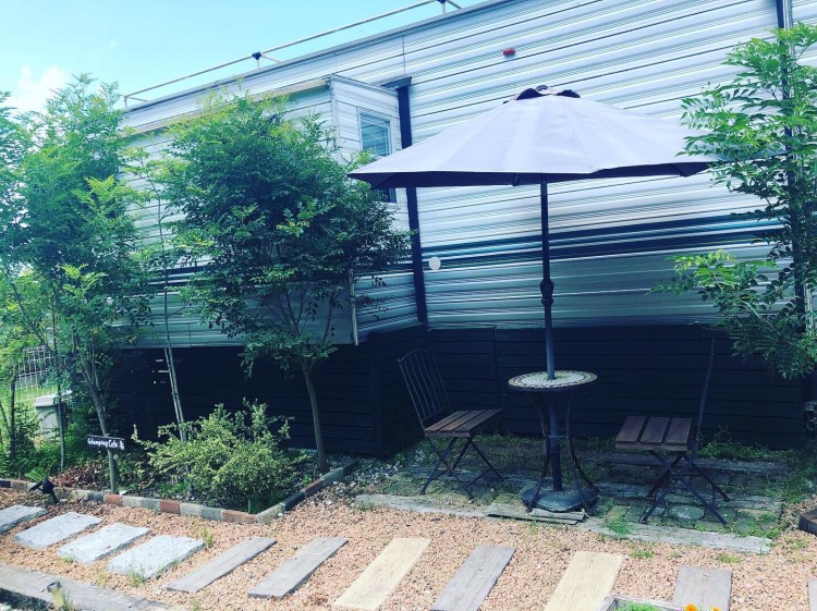 バーベーキュースペースやテントの設営スペースも有ります。 およそ300坪ある敷地内にはオーナーさんが愛情を込めて作ってきた遊歩道や季節を感じられる草花が植えてあり夜は星空がとても綺麗です♪