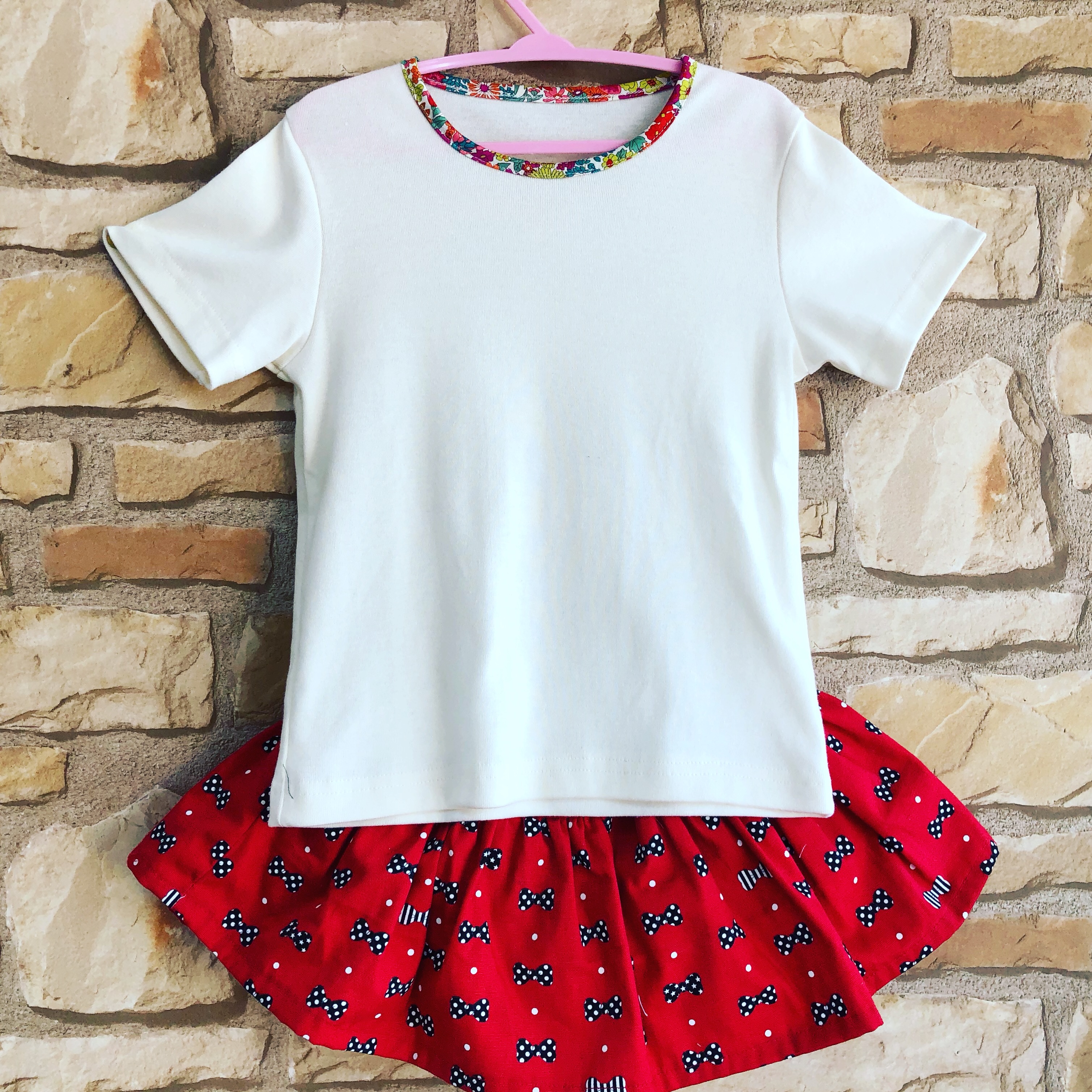 ロックミシンとふらっとロックを使ってリバティ柄を襟首にポイントで入れたティシャツをハンドメイドしました♪